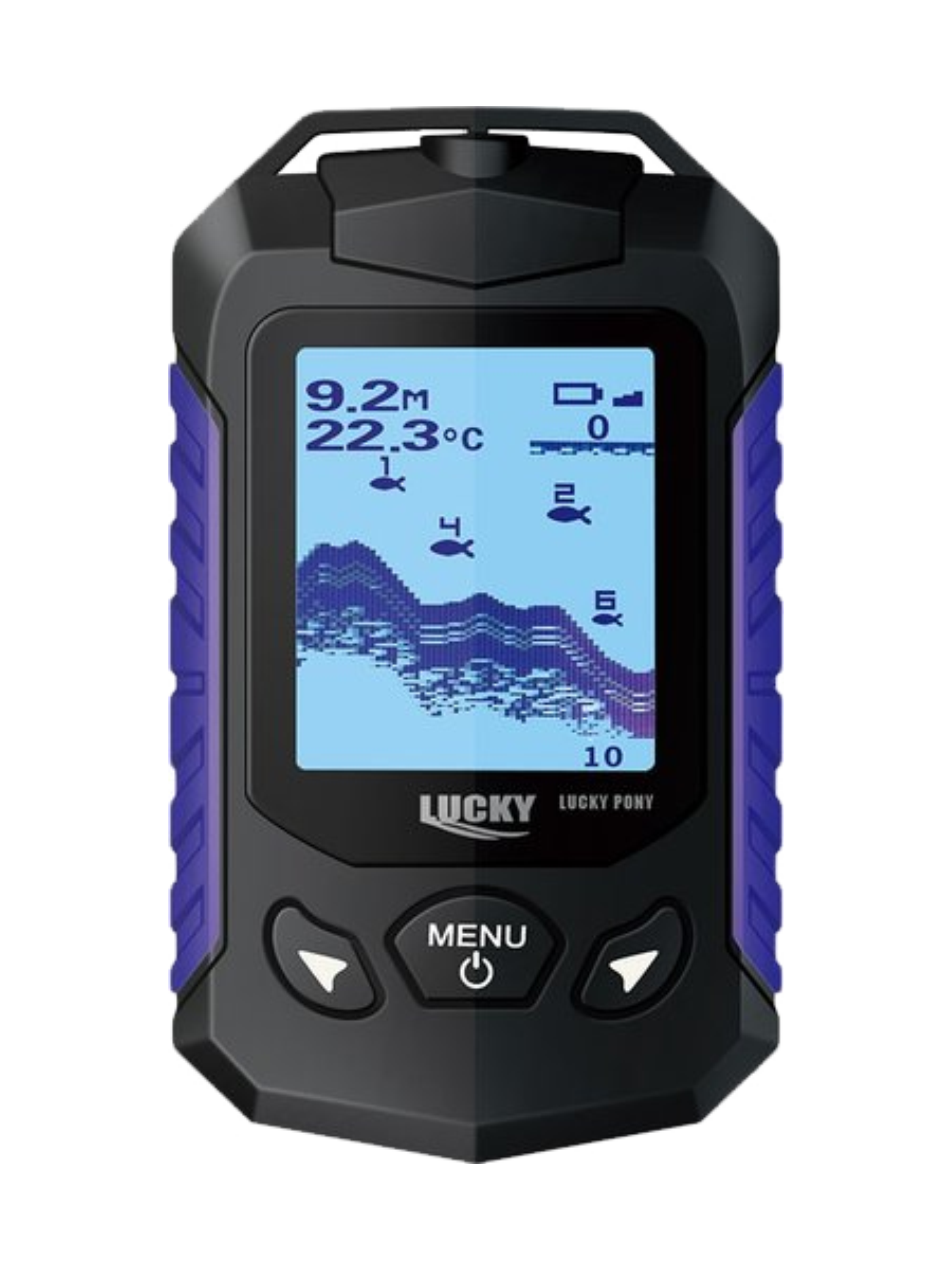 Рыбалка с берега: Lucky Pony fly - беспроводной датчик сонара обеспечивает угол сканирования 90 градусов и глубину сканирования 45 м. Матричный дисплей предоставит всю подробную полезную подводную информацию.